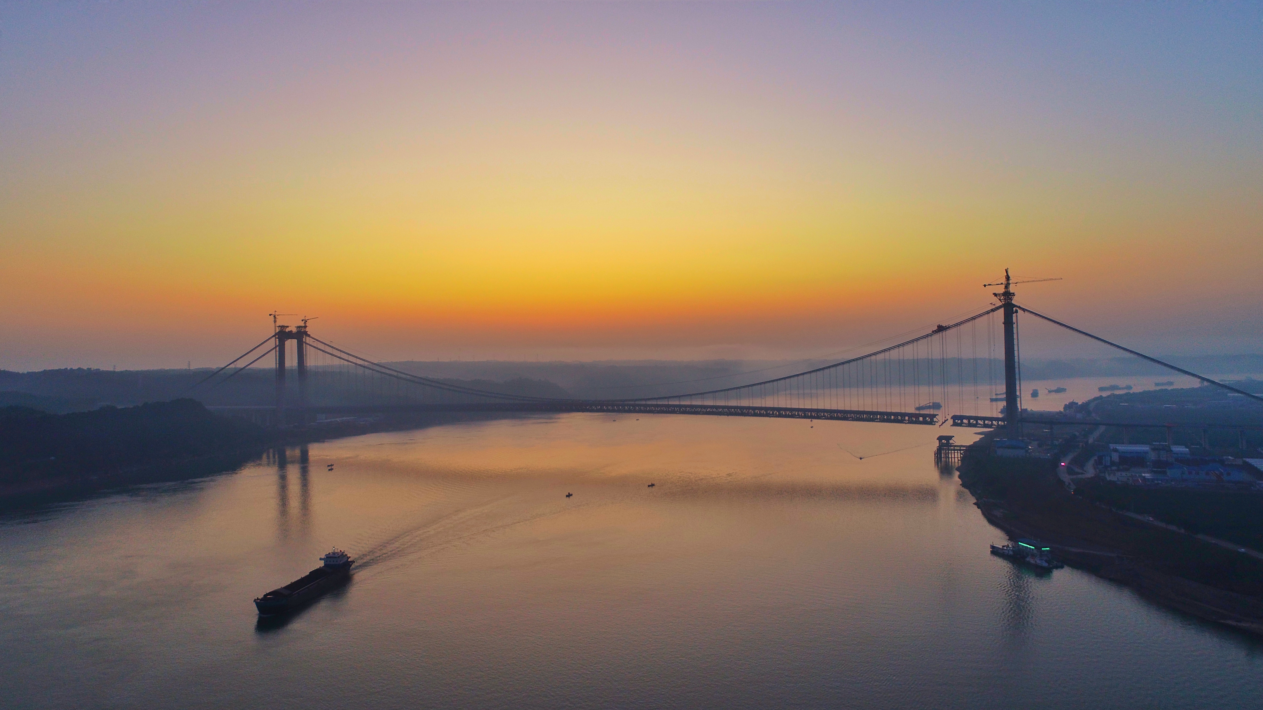 宜都長江大橋,又稱“宜都長江公路大橋”,是位于中國湖北省宜昌市的一座公路雙塔單跨鋼桁梁懸索橋,跨越長江,連接北岸枝江市白洋鎮(zhèn)和南岸宜都市陸城街道,是呼北高速公路宜昌至張家界段的控制性工程,也是湖北省“753”骨架公路網(wǎng)中規(guī)劃“縱6”的重要組成部分。大橋北接??抵烈瞬咚俟?,南連宜昌至張家界高速公路湖南段。大橋全長2,670.5米,按雙向六車道高速公路標準建設(shè),設(shè)計行車速度100公里/小時,宜都長江大橋為主跨1000m的單跨懸索橋,主纜邊跨跨度分別為276m和296.5m。全橋設(shè)兩根主纜,橫向間距為36m,吊索與主纜在一個豎直平面內(nèi)。大橋項目分兩個不同的標段,項目估算總投資約37.33億元人民幣,計劃建設(shè)工期為48個月。湖北路橋集團有限公司承建BY-2標的建設(shè),2020年4月29月,大橋?qū)崿F(xiàn)全線貫通。