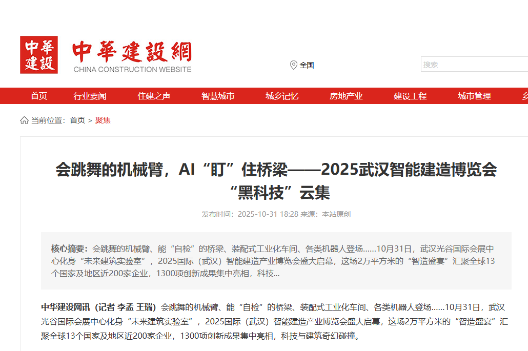 媒體聚焦 | 會(huì)跳舞的機(jī)械臂,AI“盯”住橋梁——2025武漢智能建造博覽會(huì)“黑科技”云集