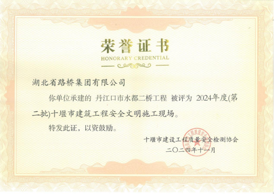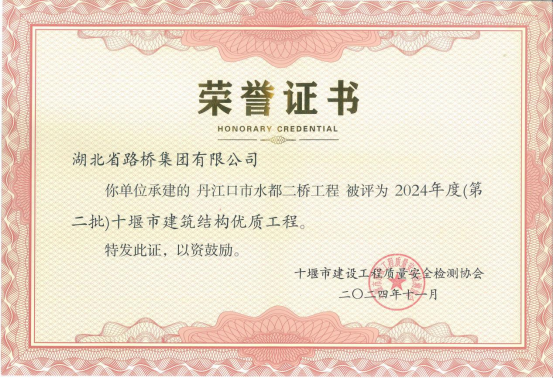 近日,十堰市建設(shè)質(zhì)量安全檢測協(xié)會公布2024年度(第二批)“十堰市建筑結(jié)構(gòu)優(yōu)質(zhì)工程”和“建筑工程安全文明施工現(xiàn)場”獲獎(jiǎng)名單,湖北路橋承建的丹江口市水都二橋工程榮登榜單,喜獲“質(zhì)安”雙獎(jiǎng)。
